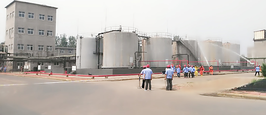 硝基苯車(chē)間巡檢員在例行巡檢時(shí)發(fā)現(xiàn)儲(chǔ)罐區(qū)苯三號(hào)罐閥門(mén)泄露,用對(duì)講機(jī)立即報(bào)告車(chē)間安全值班員。車(chē)間班組維修人員當(dāng)即到現(xiàn)場(chǎng)搶修,由于閥門(mén)泄露情勢(shì)比較嚴(yán)重,黃色的苯霧蔓延,隨時(shí)會(huì)發(fā)生著火危險(xiǎn)。帶隊(duì)班長(zhǎng)立即請(qǐng)示車(chē)間搶險(xiǎn)防爆隊(duì)支援搶修,在防爆搶修過(guò)程中,事態(tài)嚴(yán)重,一人暈倒。車(chē)間搶險(xiǎn)隊(duì)長(zhǎng)立即上報(bào)虹橋公司值班調(diào)度。值班調(diào)度迅泄漏應(yīng)急救援預(yù)案,各應(yīng)急救援小組人員迅速奔赴現(xiàn)場(chǎng)。虹橋公司搶險(xiǎn)防暴隊(duì)人員立即開(kāi)啟四個(gè)應(yīng)急消防水泵,伴隨著警報(bào)聲,白色的水龍從四個(gè)方向“箭”似噴射向苯儲(chǔ)罐和泄露罐閥門(mén)著火點(diǎn),苯霧迅即被稀釋,搶修人員成功對(duì)泄漏閥門(mén)進(jìn)行了堵漏;同時(shí)保衛(wèi)警戒組拉起了隔離帶,勸導(dǎo)、疏散閑雜人員;醫(yī)療救護(hù)組抬出受傷人員至安全區(qū)迅速進(jìn)行初期救護(hù)……整個(gè)救援搶險(xiǎn)緊張有序地進(jìn)行演練完成。