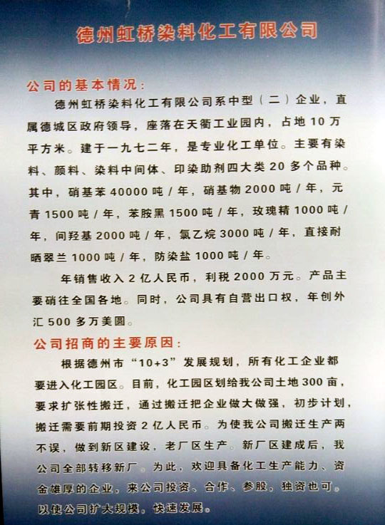 德州虹橋染料化工有限公司招商引資說明